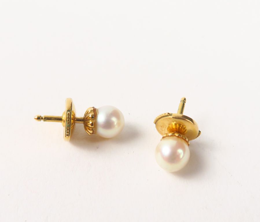 Puces d'oreilles ornées de perles. Monture en or. Poids tel : 1,9 g