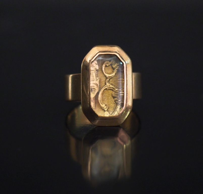 Rare bague ancienne en or, fond à charnière orné d'un monogramme (bague à poison ?). TDD 49 Poids tel : 5,50 g