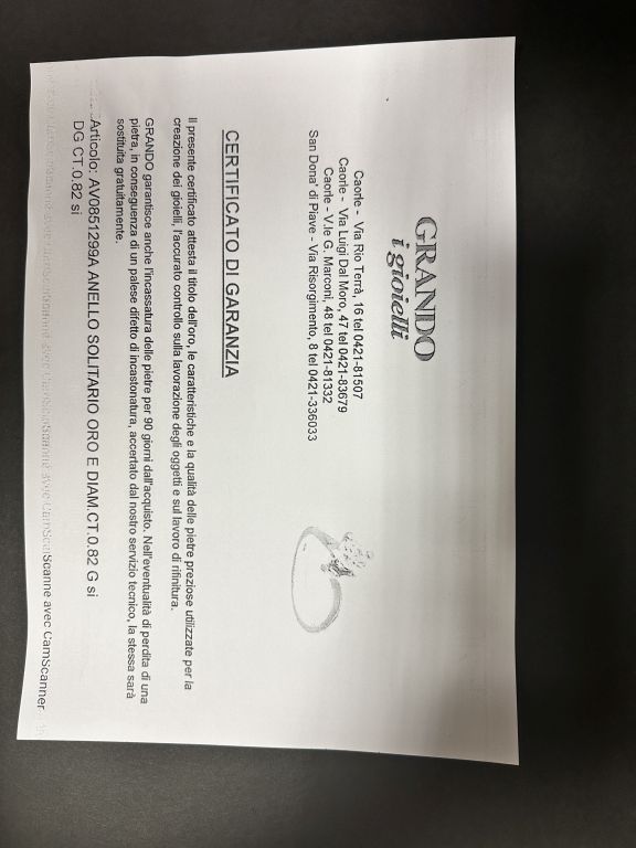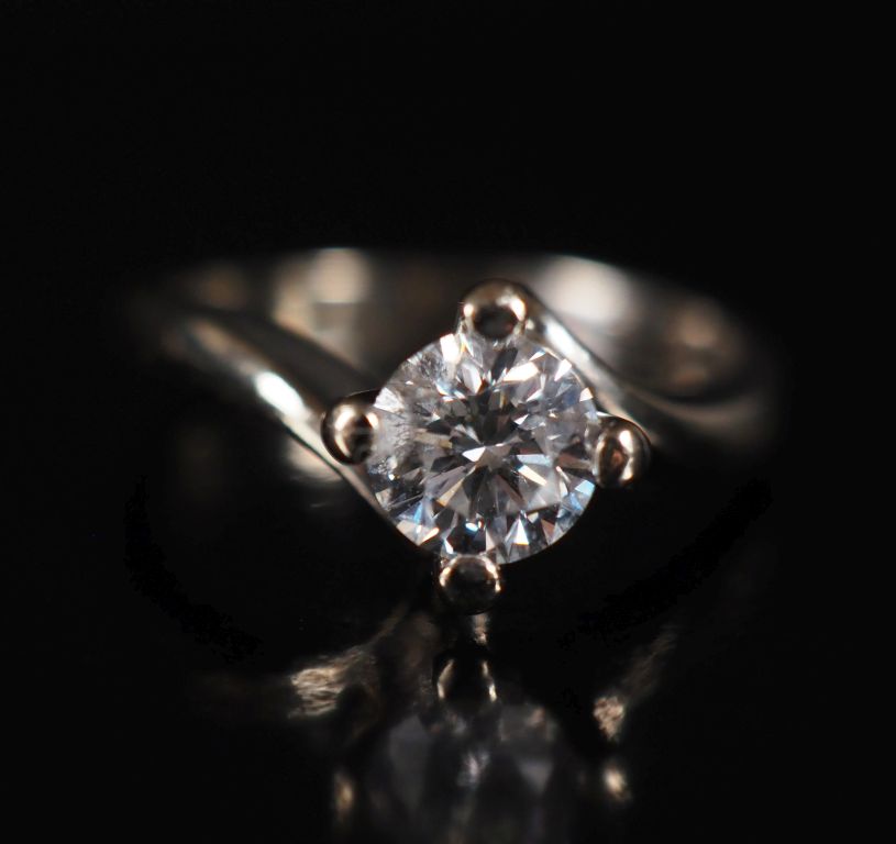 Solitaire de 0,82 cts, G, SI , monture en or blanc Poids tel : 5,09 g Avec son certificat