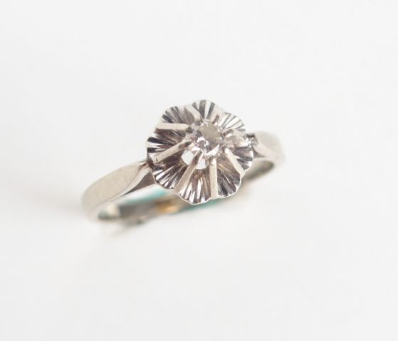 Solitaire monture or blanc, ornée d'un brillant de 0,10cts environ. TDD 48. Poids tel: 2,5gr