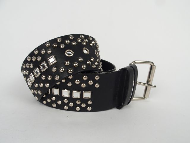 Lot de SONIA RYKIEL. Large ceinture en cuir noir, cloutée et lignes de strass au prix de 80 à 120 € en vente aux enchères par l'hôtel des ventes Primardeco