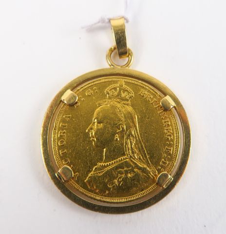 Souverain en or à l'effigie de la Reine Victoria monté en pendentif. Poids : 10,6 g