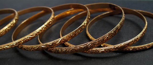 Lot de Suite de 6 bracelets en or jaune, à décor gravé de volutes. Poids : 84 au prix de 1500 à 1600 € en vente aux enchères par l'hôtel des ventes Primardeco
