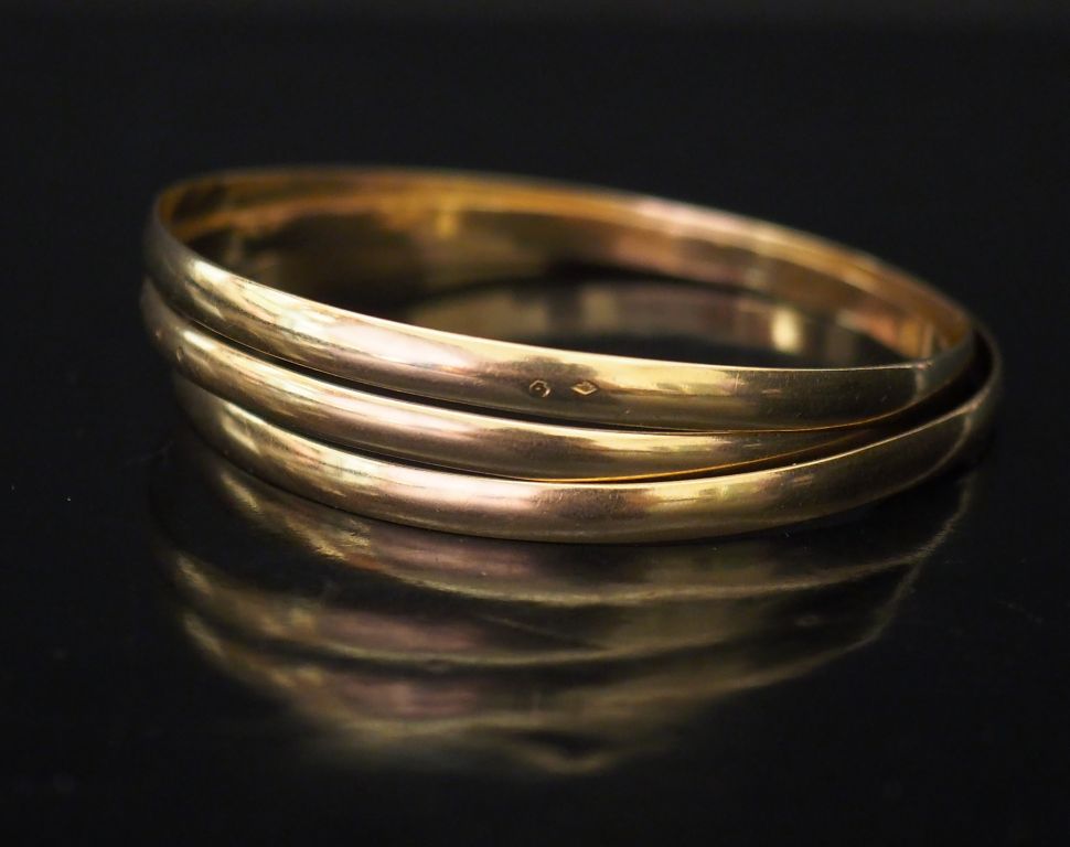 Lot de Trois bracelets jonc plats en or jaune. Diam. 6,5 cm et 6,8 cm Poids au prix de 900 à 1000 € en vente aux enchères par l'hôtel des ventes Primardeco