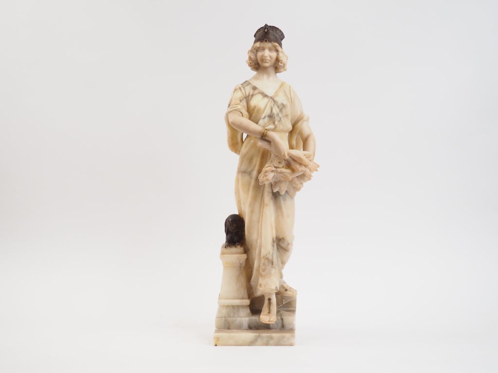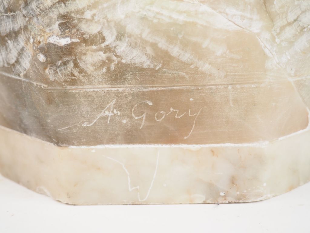 A. GORY "La Moisson". Sculpture en albâtre et albâtre patiné. Signée. H. 68,5 cm (petits accidents)