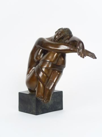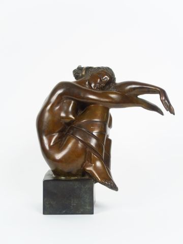 Lot de Albert AUX 'La prisonnière'. Sculpture en bronze à patine brune, signé au prix de 400 à 500 € en vente aux enchères par l'hôtel des ventes Primardeco