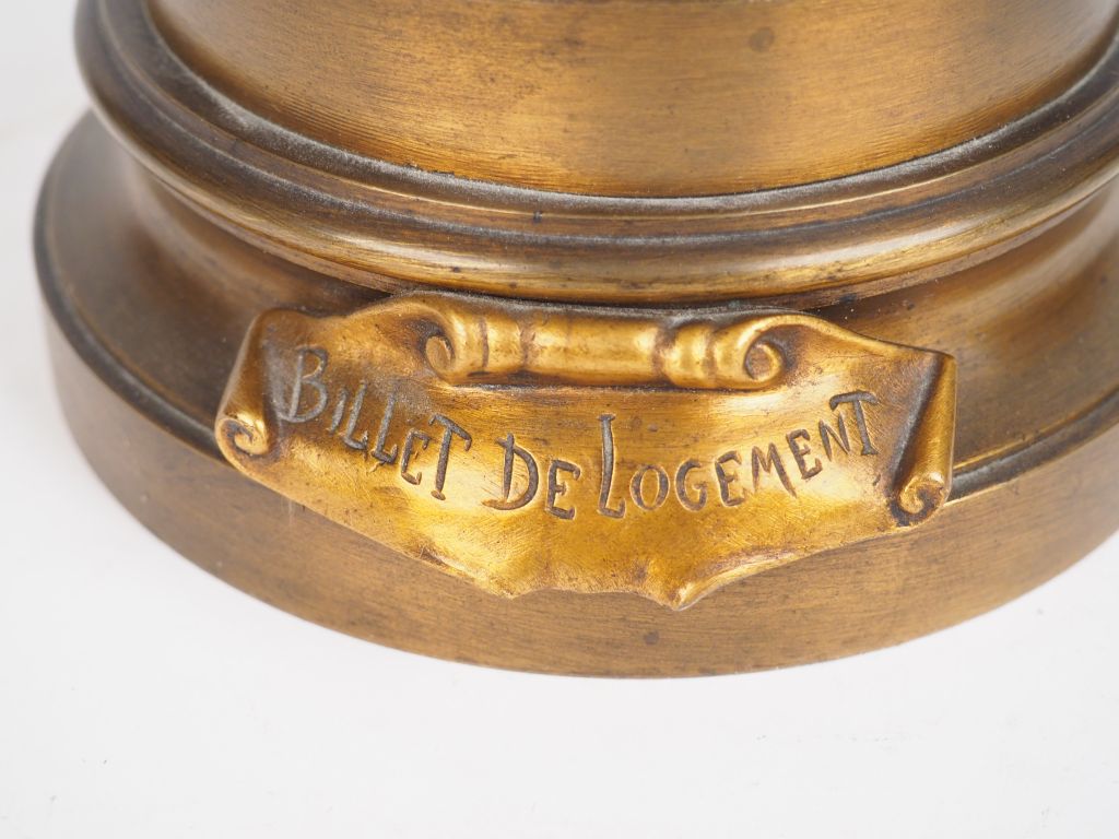 Auguste MOREAU. 'Billet de logement'. Sculpture en bronze à patine méd...