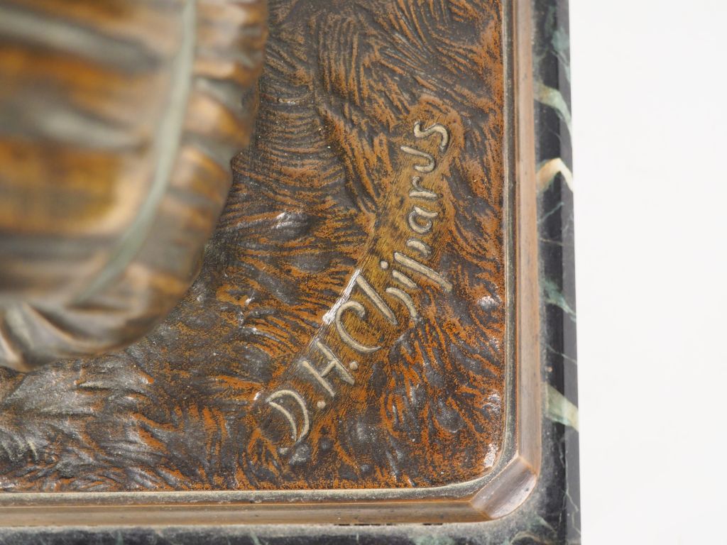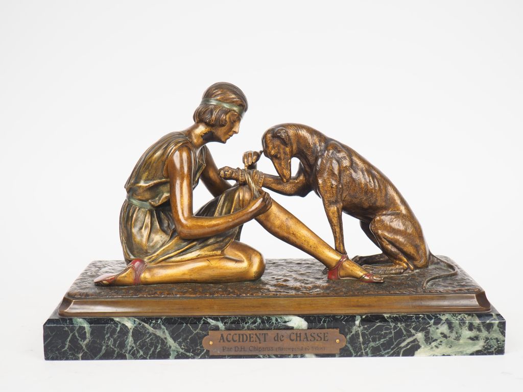 CHIPARUS. "accident de chasse". Sculpture en bronze en partie polychrome, socle en marbre vert. Signée H. ave le socle 26 x 41 x 18 cm
