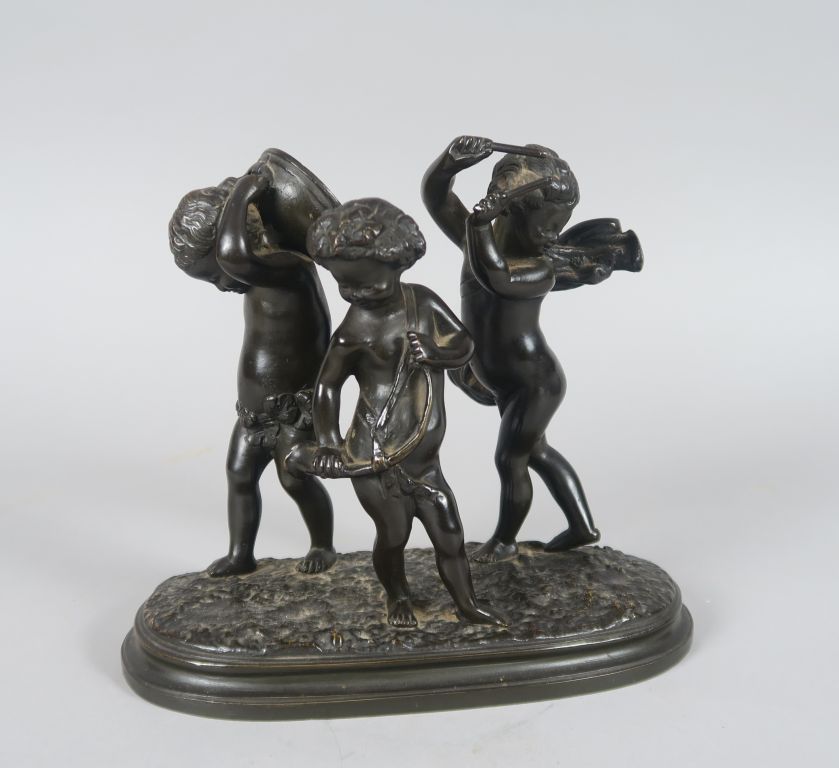 CLODION (d'après) "Amours musiciens" Groupe en bronze à patine brune. ...