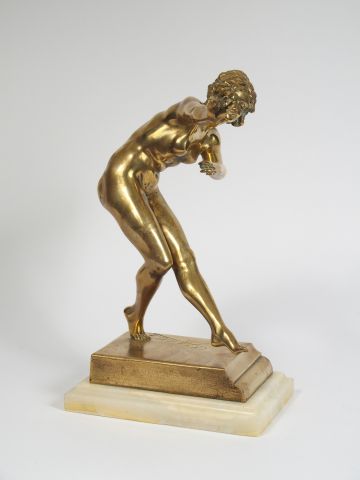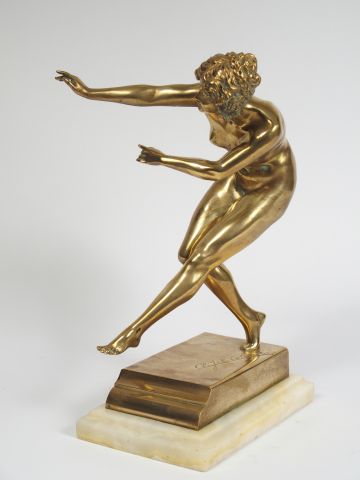 COLINET. Sculpture en bronze doré « Danseuse ». Socle en onyx. H. : 33 cm et 34cm avec le socle. Signée.