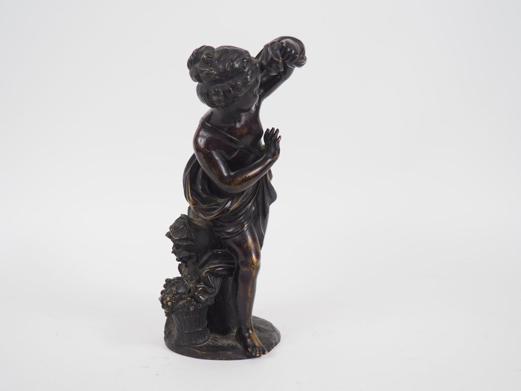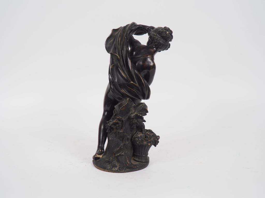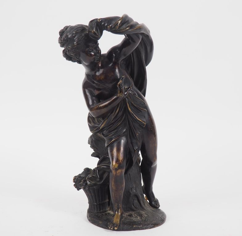 Ecole française début XIXème. "jeune fille au panier de raisins" Sculpture en bronze à patine brune. H. 31 cm