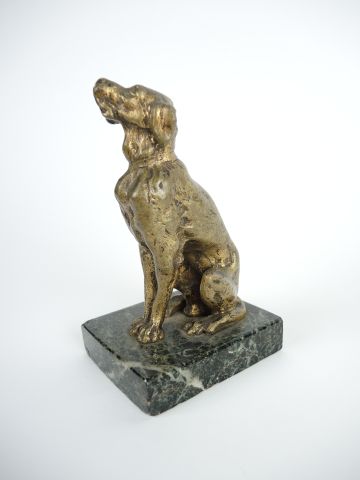 Ecole française fin XIXème ‘chien assis’. Sculpture en bronze patiné, socle marbre vert. H. 14 cm