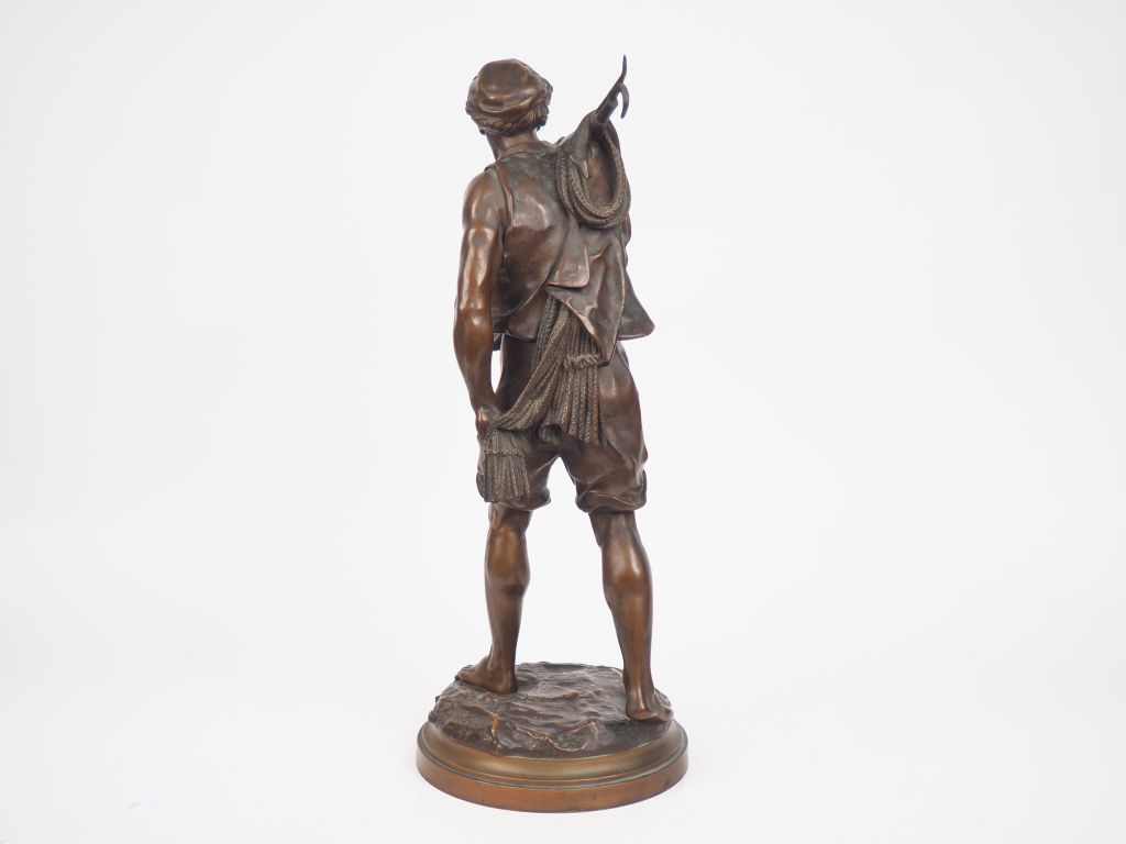 Emile PICAULT. "Pêcheur". Sculpture en bronze à patine médaille. Signée. H. 58 cm.