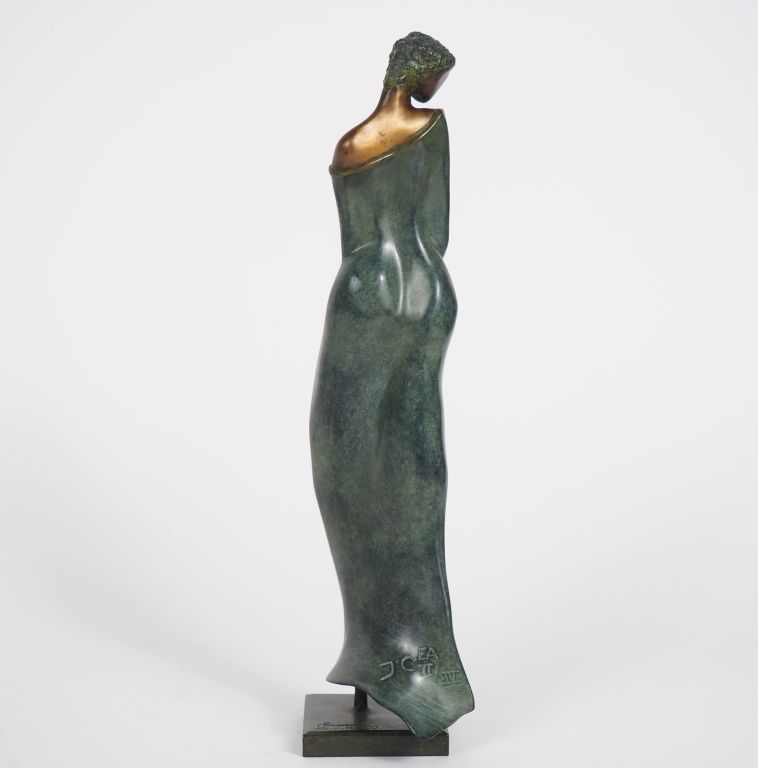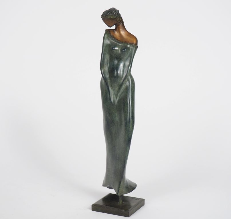 F. PAUMELE. "Jeune fille pudique". Sujet en bronze. signé E. A 2/4. Monogrammé JC. H. 25 cm.
