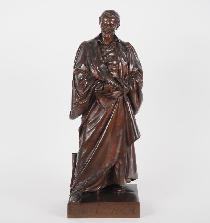 Henri DUMAIGE. "François Rabelais" Sculpture en bronze à patine médaille. Signée H. 55 cm
