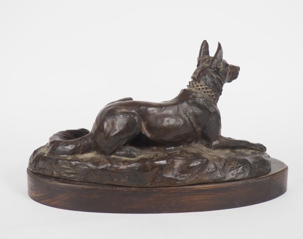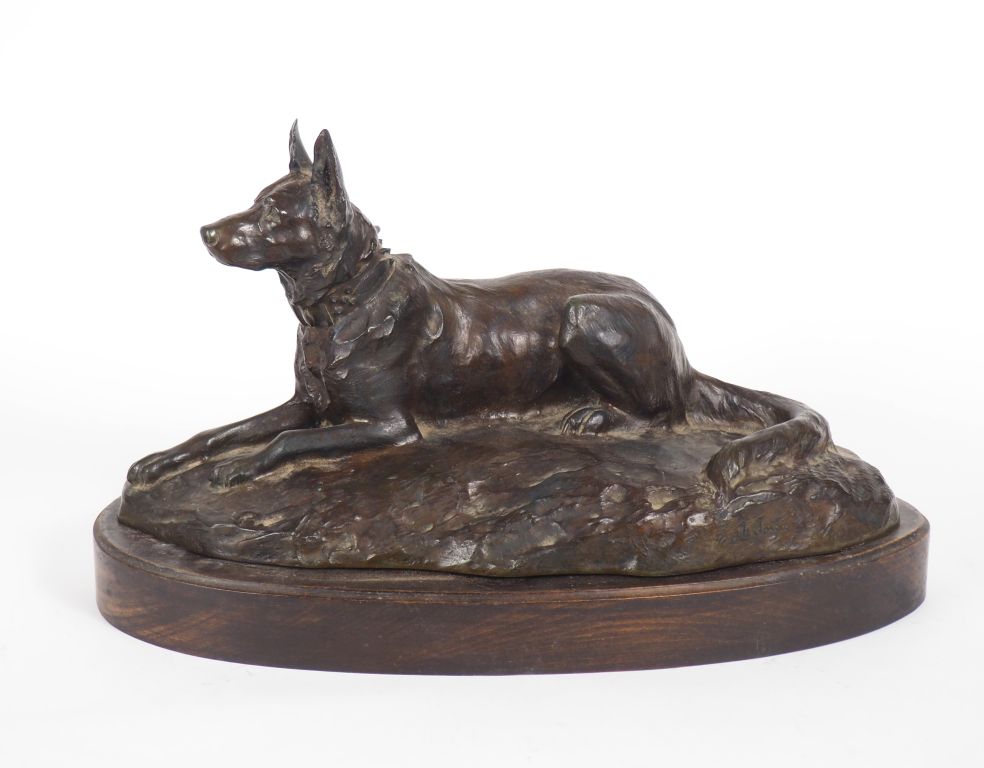J. JOIRE. "Le chien loup". Sculpture en bronze à patine brune. Cachet du fondeur Susse. H. 26 x 50 cm. Signé.