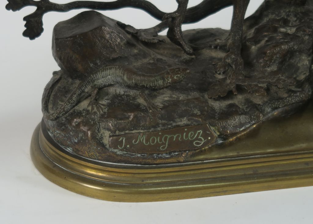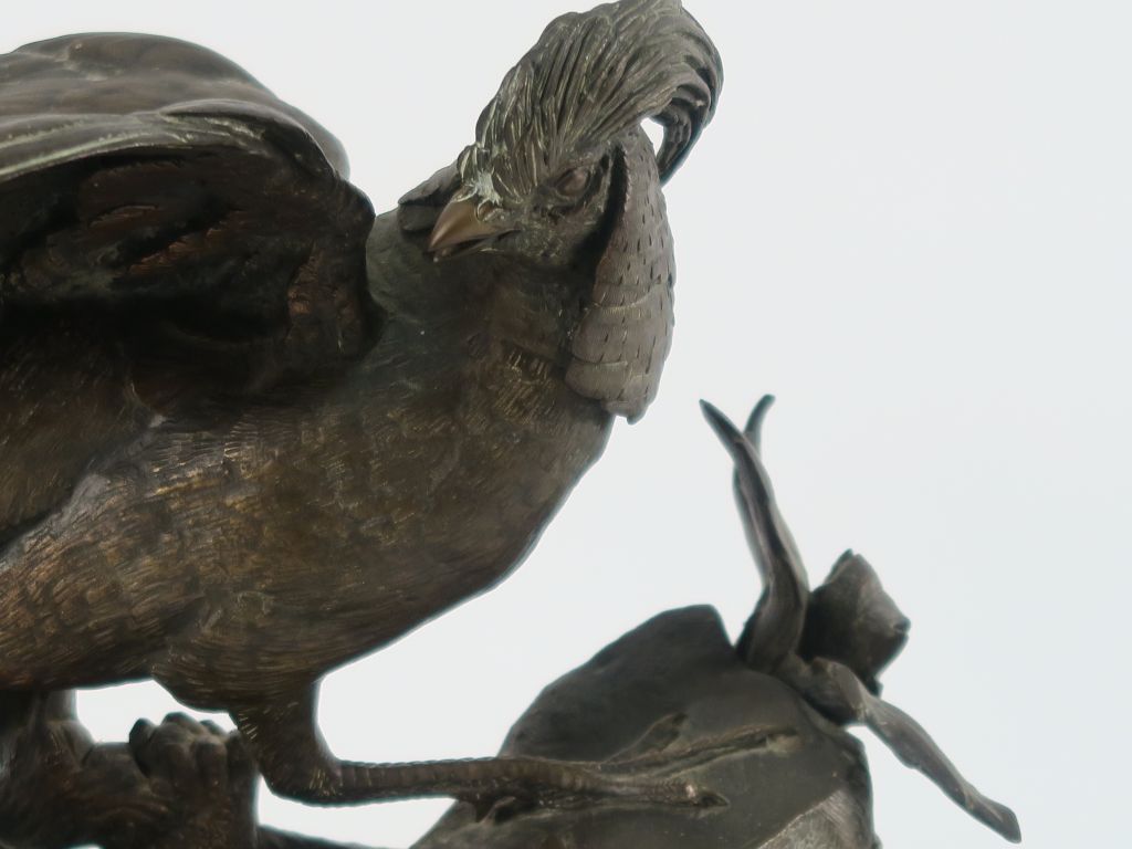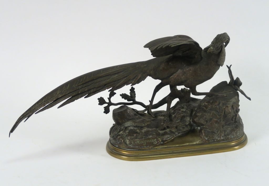 Lot de J. MOIGNIEZ "Faisan doré" Sculpture en bronze à patine brune. Signée. au prix de 400 à 600 € en vente aux enchères par l'hôtel des ventes Primardeco