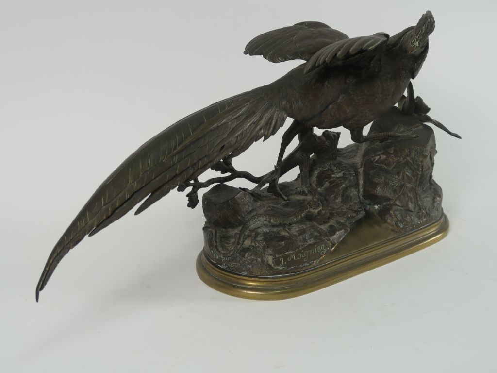 J. MOIGNIEZ "Faisan doré" Sculpture en bronze à patine brune. Signée. ...