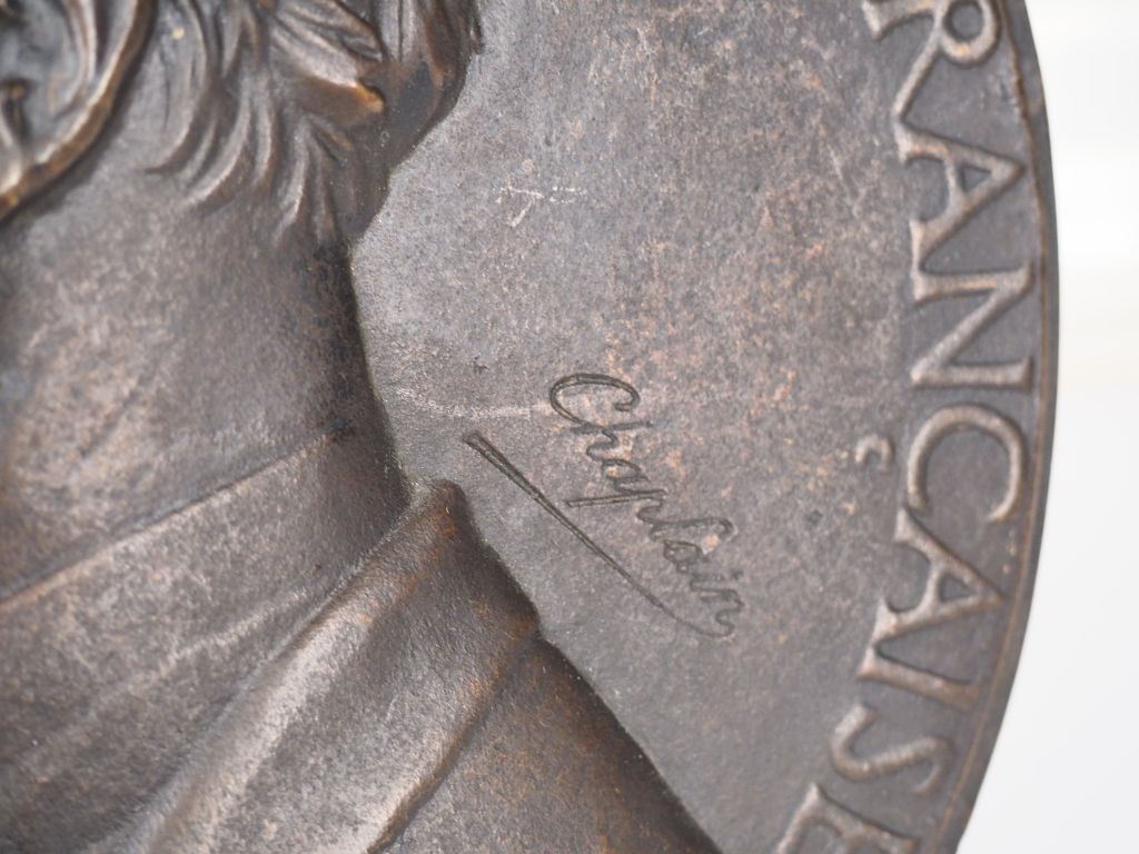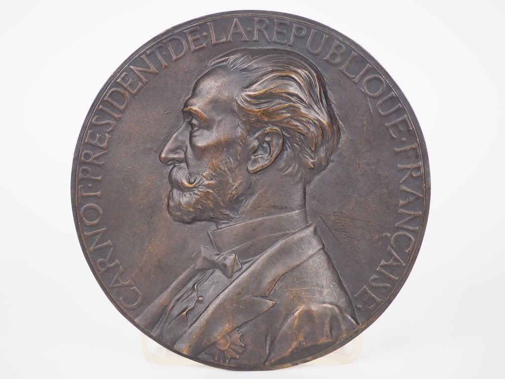 Jules Clément CHAPLAIN. "Carnot président de la république française". Médaillon en bronze à patine brune. Signé. Diam. 20 cm.