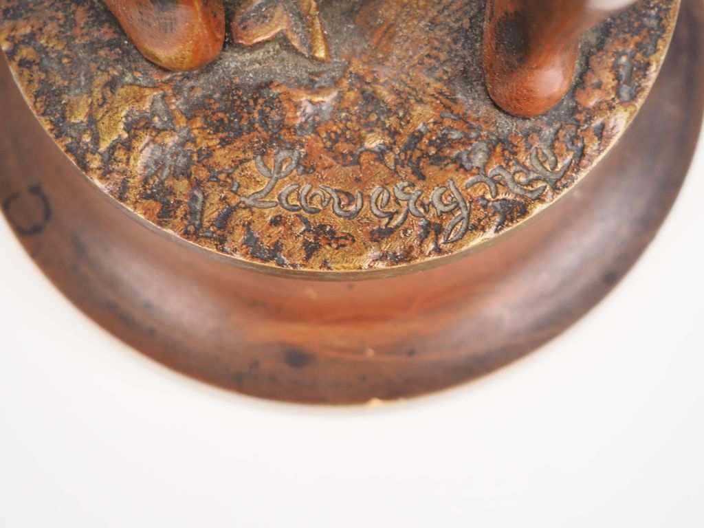 LAVERGNE. "le joueur de fifre au lézard" Sujet en bronze à patine médaille Signé H. 32 cm (petit manque sur la terrasse)