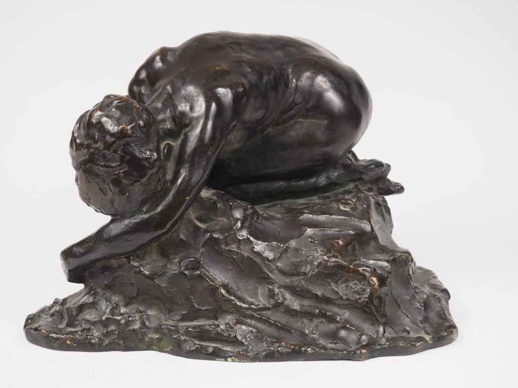 M. L. CLADEL."'Nue". Sculpture en bronze en patine brune, signée et datée 1909. H. GONOT Fondeur. Dim. : 35 x 28 x 23,5 cm.