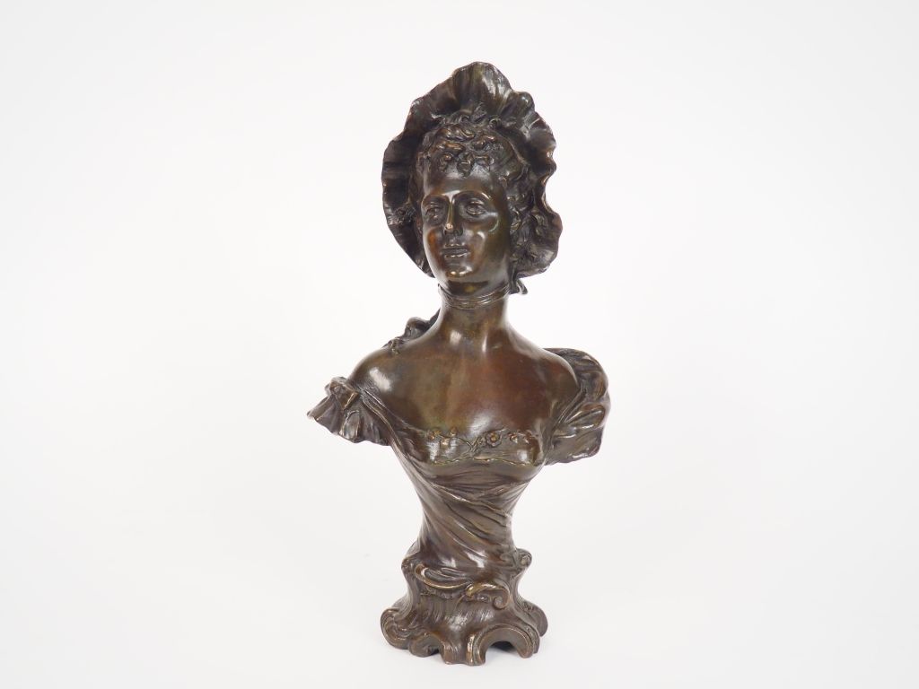 Lot de MESTAIS "Elégante au chapeau" Sujet en bronze à patine brune. Signé. H au prix de 200 à 300 € en vente aux enchères par l'hôtel des ventes Primardeco