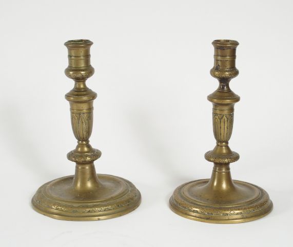 Paire de bougeoirs Louis XIV en bronze. H. : 21 cm