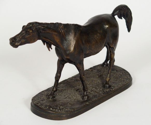 PJ. MENE, "L'étalon". Sujet en bronze à patine brune. H. : 17 cm, Larg...