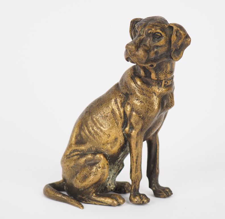 Sujet en bronze "chien de chasse assis". H. 11 cm