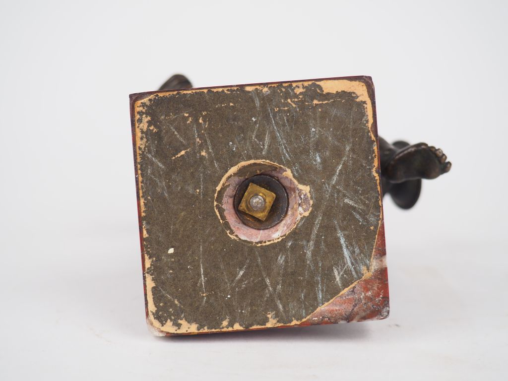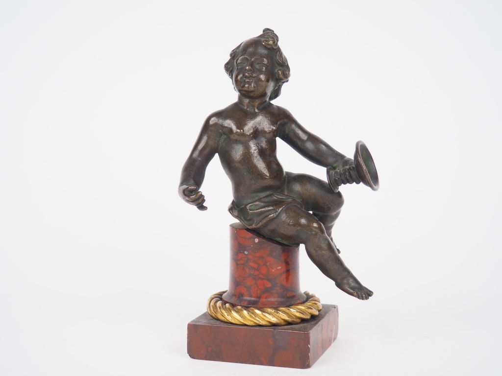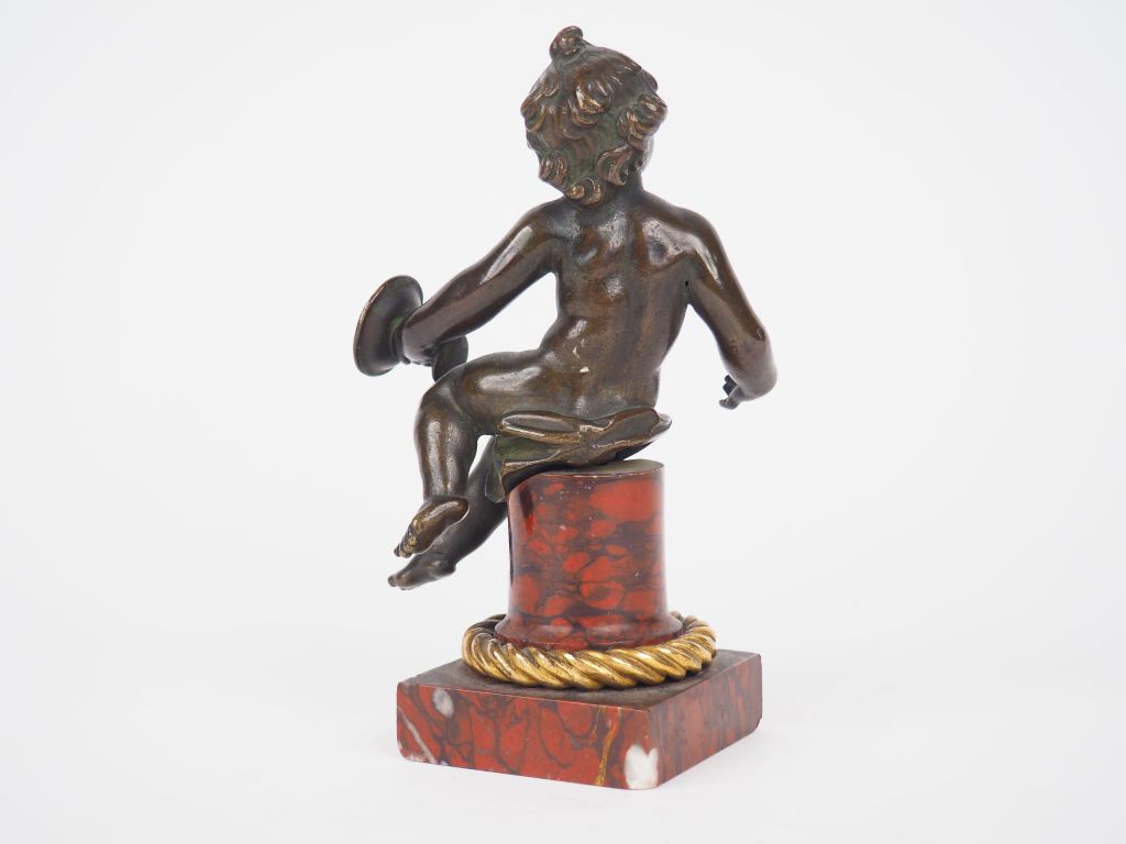 Sujet XIXème en bronze à patine brune et marbre rouge (petites égrenures au socle). « Bachus enfant ». H. 18 cm