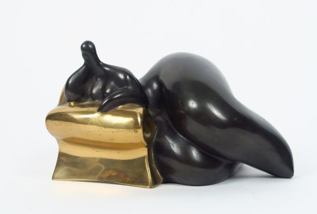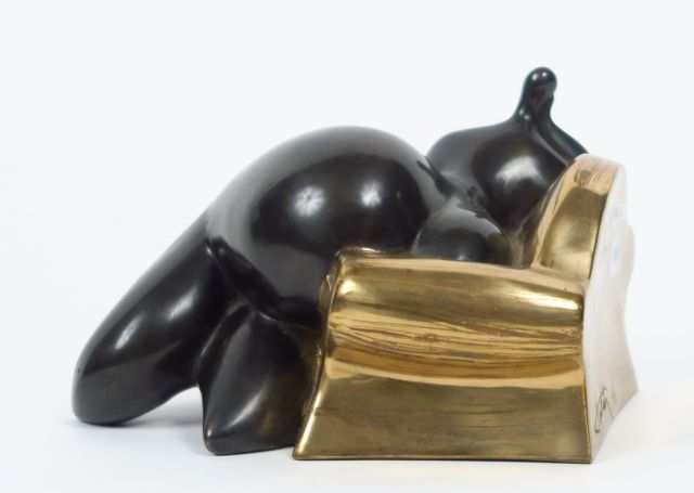 TOUTAIN. 'Jeune femme au fauteuil club'. Sculpture en bronze à patine brune et dorée signée et numérotée 4/8. 11 x 13 x 16 cm