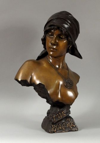 VILLANIS "Fille de bohème". Sculpture en bronze à double patine. Signée et titrée. H. : 58,5 cm