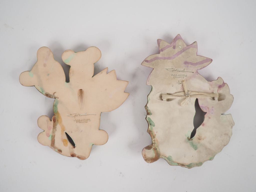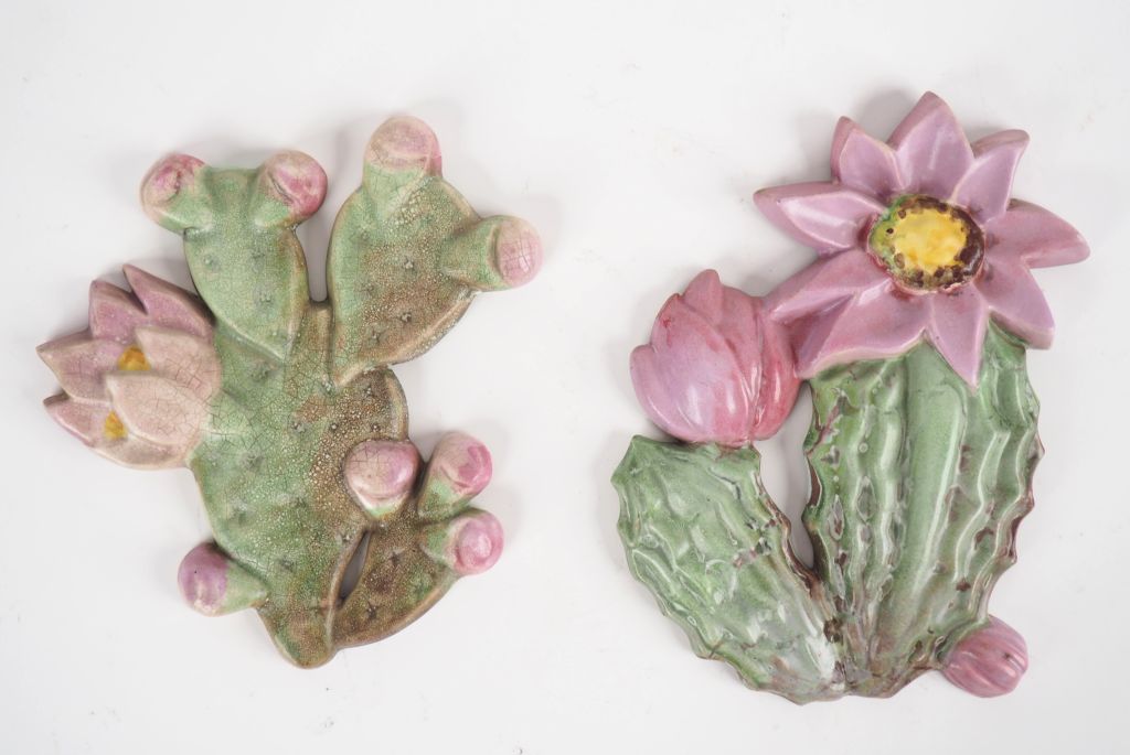 GIRAUD à VALLAURIS. Deux plaques murales polychromes figurant des cactus. Dim. 24 x 18 cm. Dim. 20 x 18 cm.