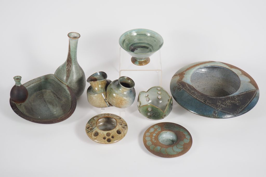 Hélène RAMBAULT (?). 7 différentes pièces en céramique. Signées. H. D...