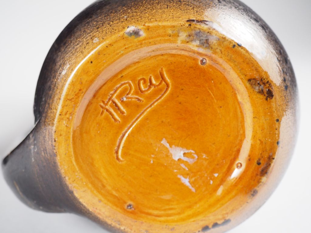 Henri Paul REY. Vase en céramique émaillée polychrome et une cruche assortie Signés H. 22 cm et 22,5 cm (fel sur le bas de l'anse de la cruche).