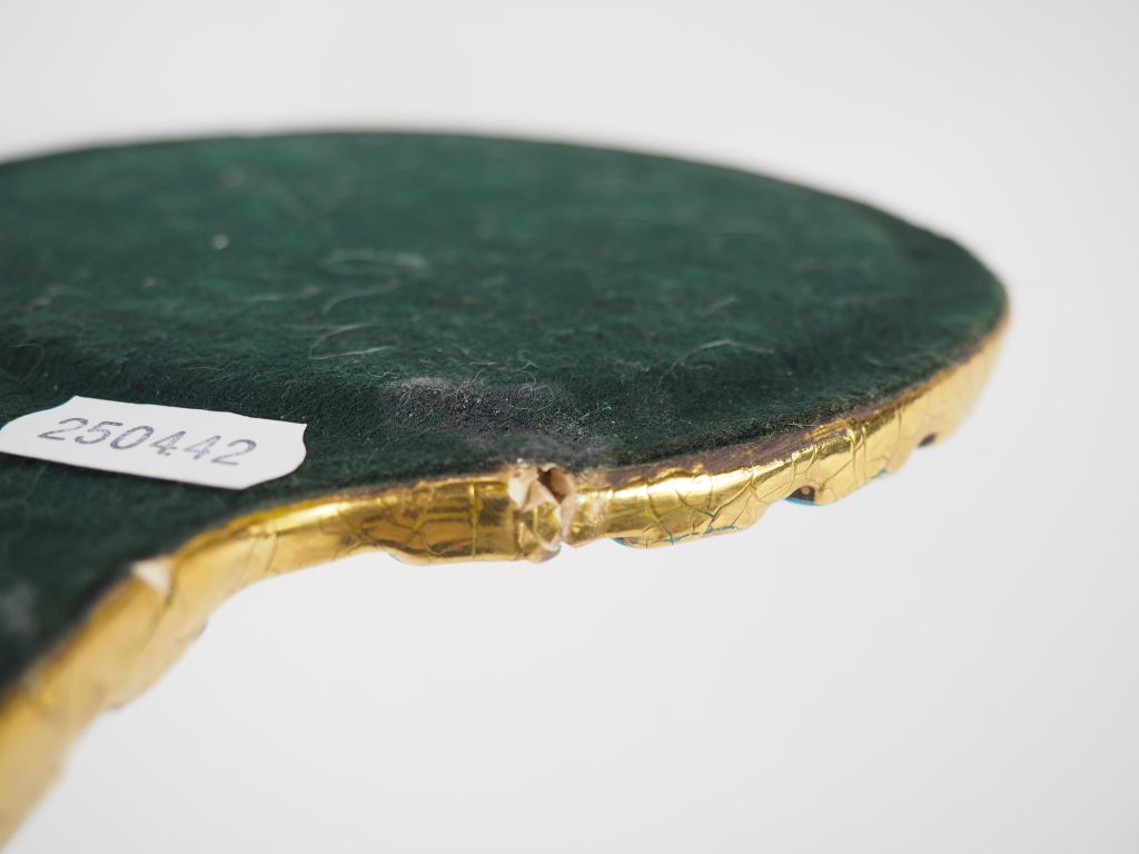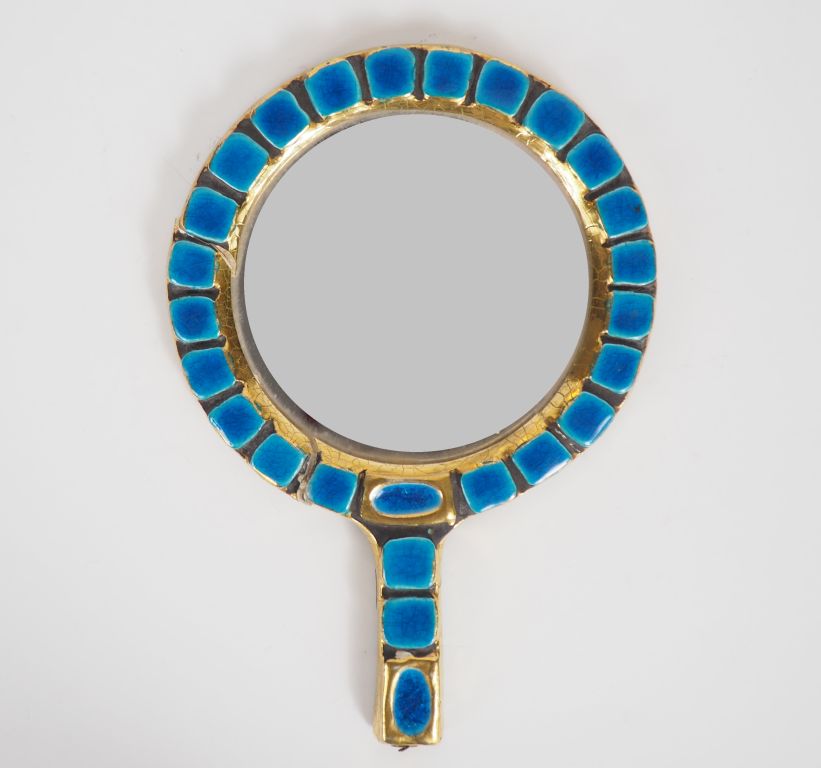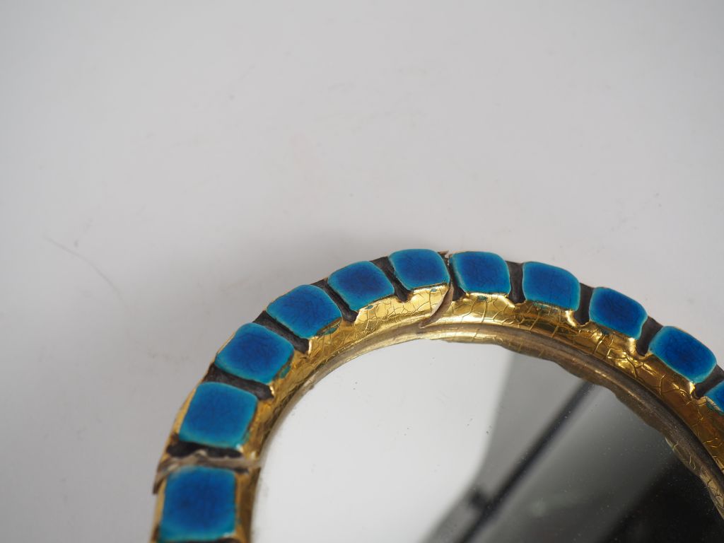 Lot de Mithé ESPELT. Face à main en céramique bleue et dorée. Dim. 22 x 15 cm au prix de 60 à 80 € en vente aux enchères par l'hôtel des ventes Primardeco