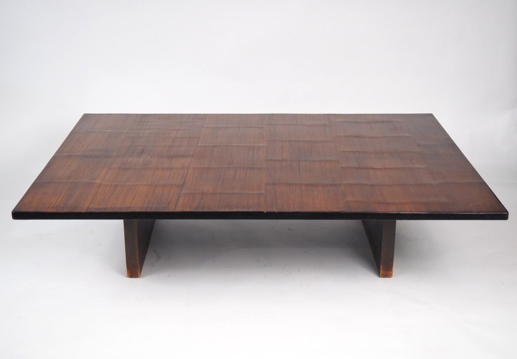 Lot de Axel VERVOORDT. Grande table basse en bois et placage de bambou patin au prix de 200 à 300 € en vente aux enchères par l'hôtel des ventes Primardeco