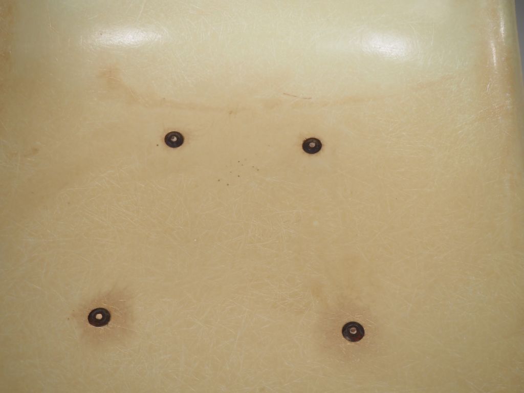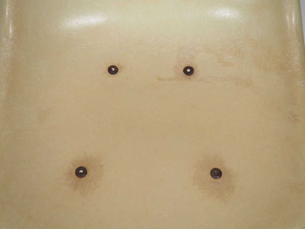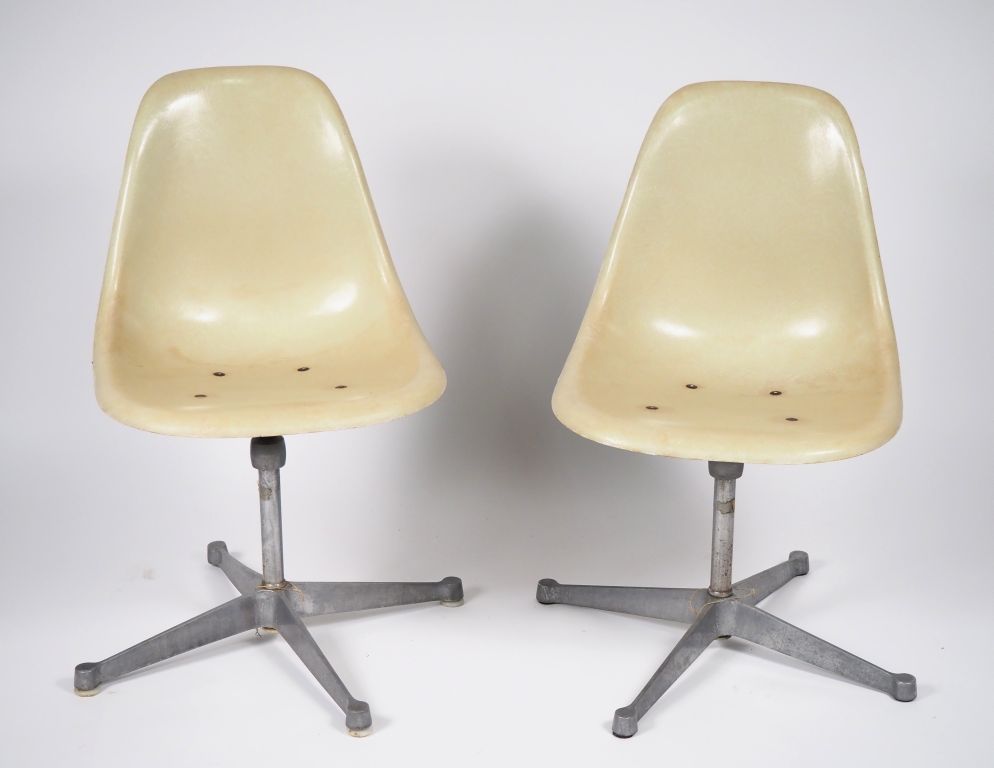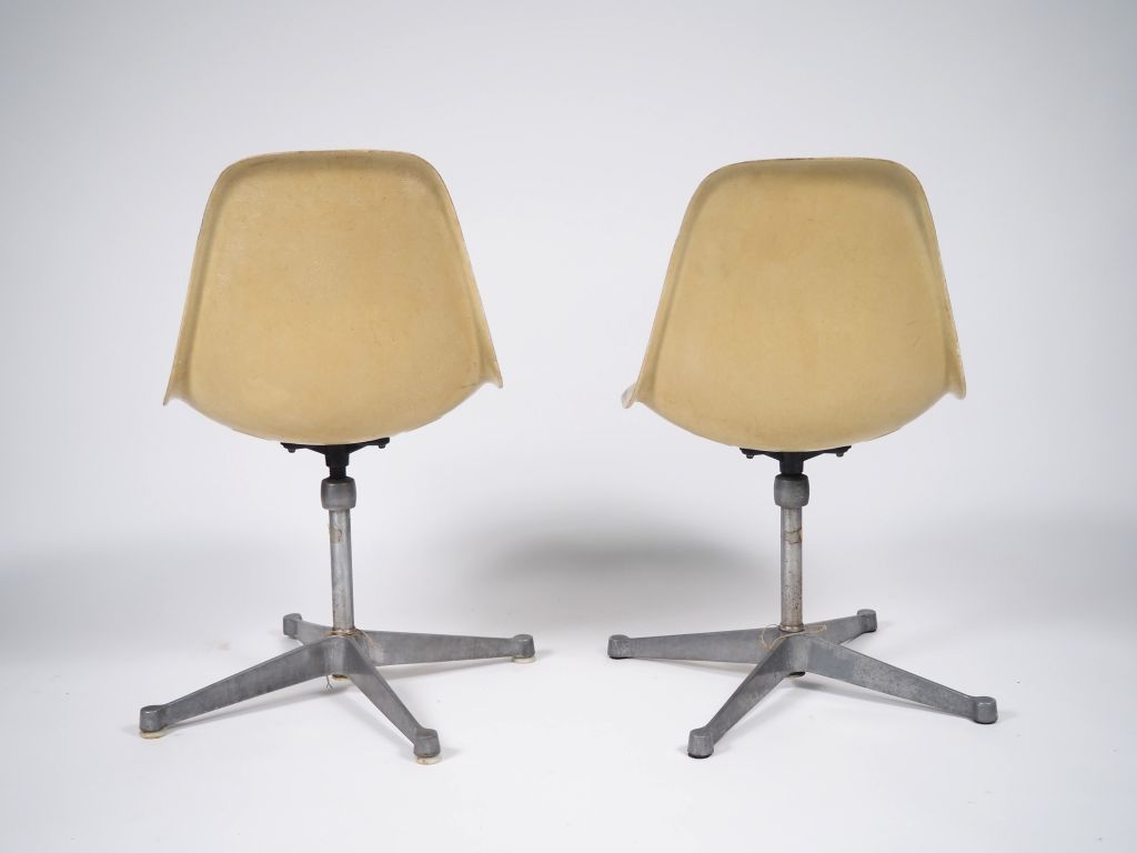 Charles EAMES édition Herman MILLER. Paire de chaises en fibre de verre piètement en acier. Porte l'étiquette "Herman Miller".