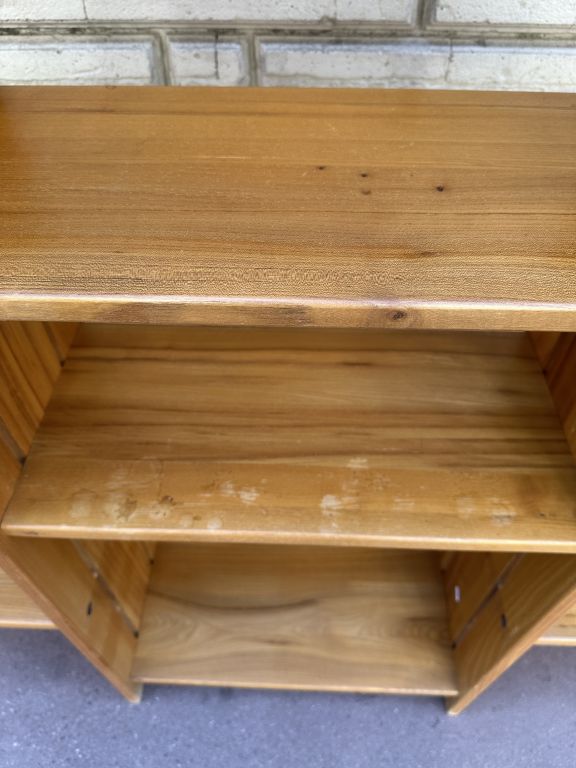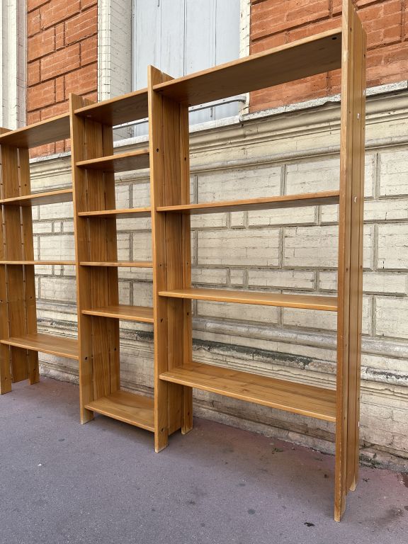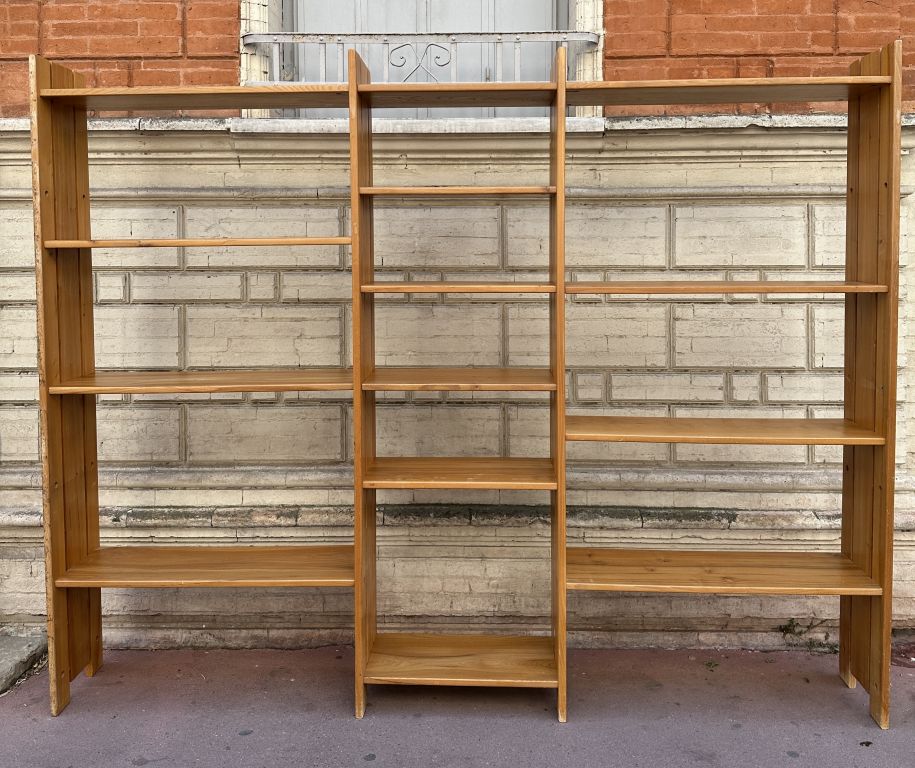 Maison REGAIN. Bibliothèque étagère en orme, à trois volumes modulables. Dim. 180 x 229 x 29 cm.