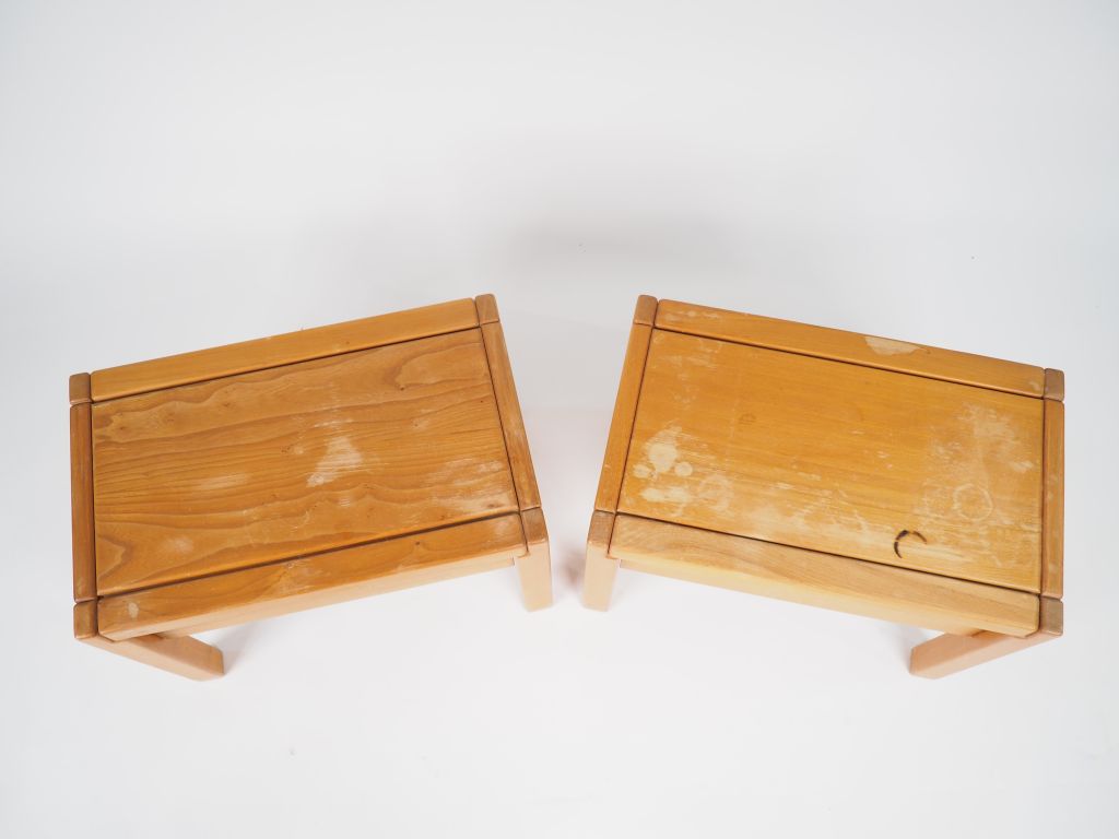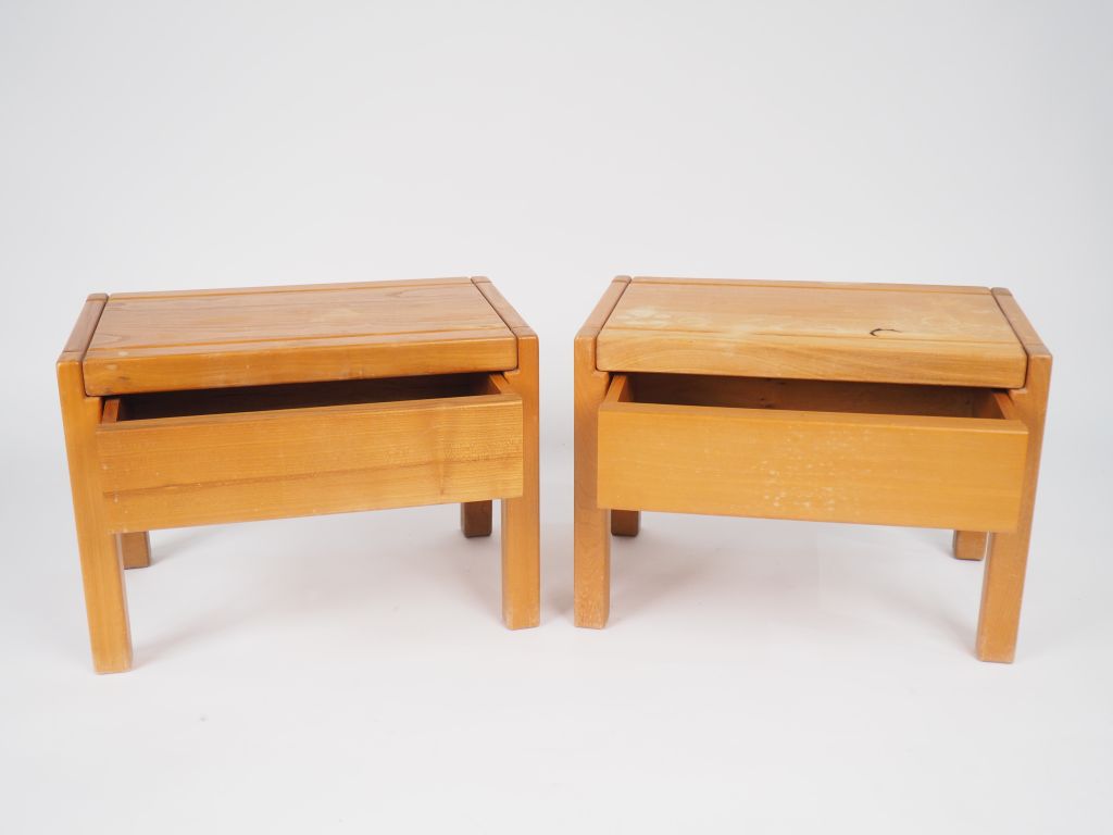 Maison REGAIN. Paire de chevets en orme massif, ouvrant à un tiroir. Dim. 40 x 54 x 35 cm.