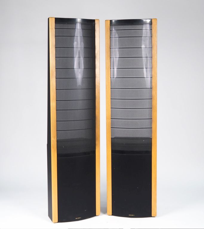 MARTIN LOGAN REQUEST. Paire d'enceintes haute fidélité en bois et chêne. H. 181 x 47 x 30 cm