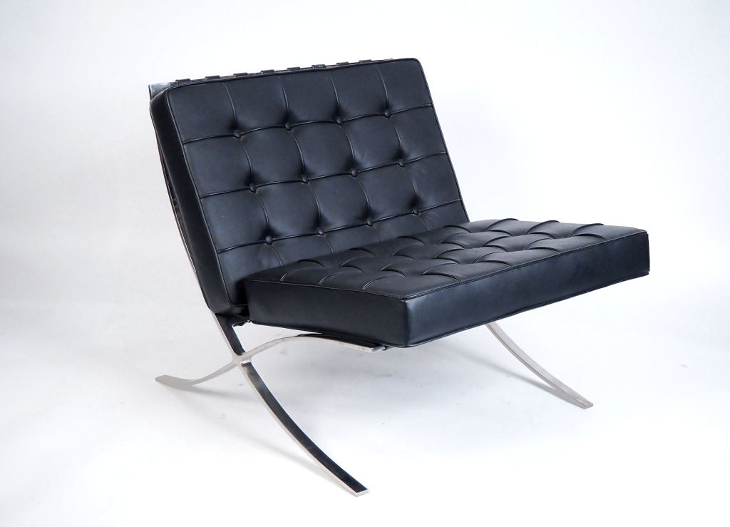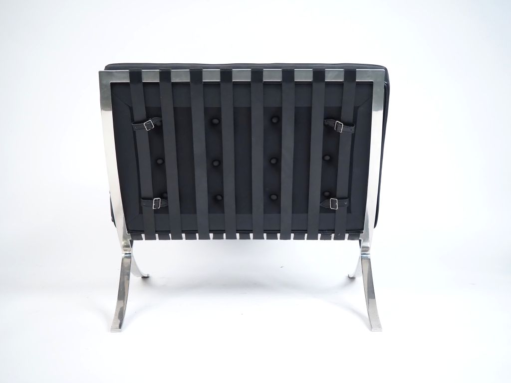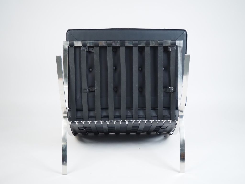 MIES VAN DER ROHE (d'après) Chauffeuse "barcelona" en cuir noir et mét...