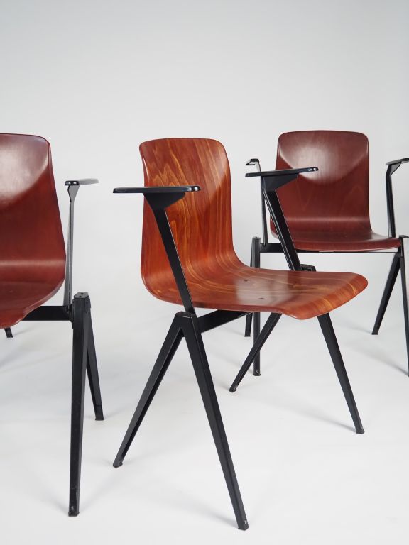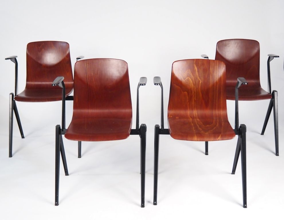 Lot de PAGHOLZ - PAGWOOD. Suite de 4 chaises en bois teinté et métal laqué no au prix de 100 à 150 € en vente aux enchères par l'hôtel des ventes Primardeco