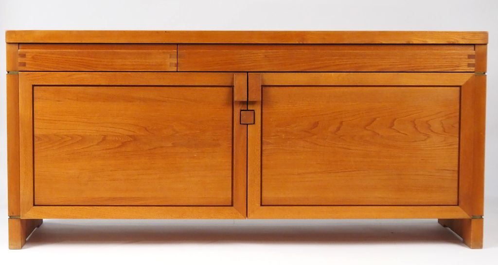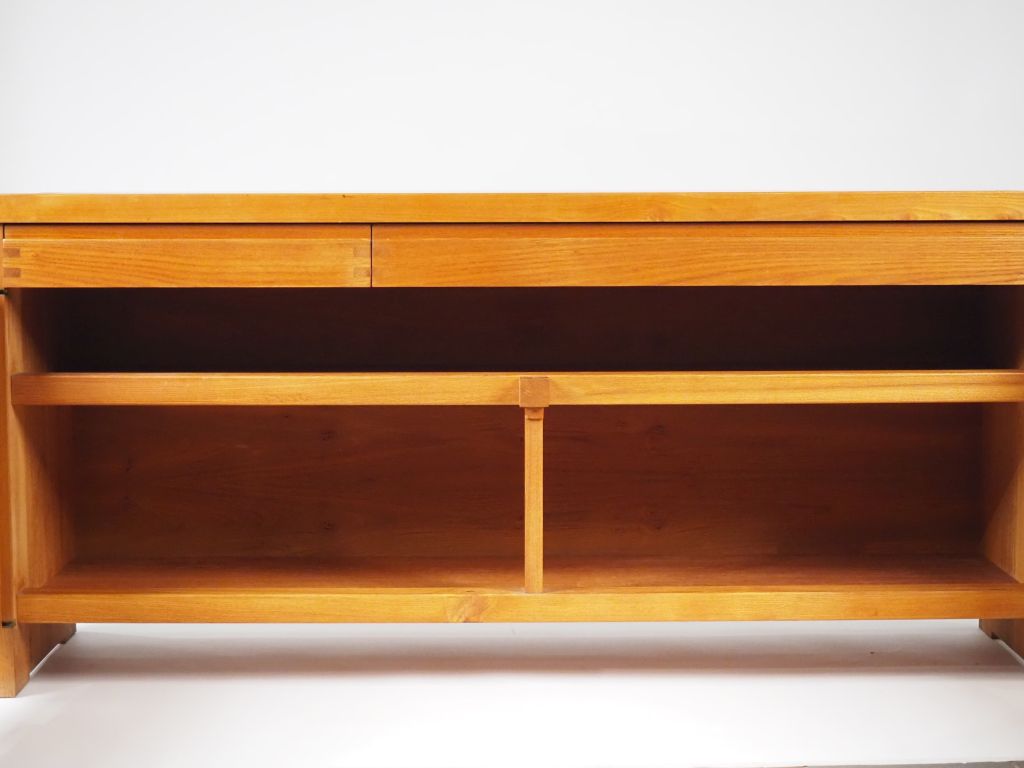 Pierre CHAPO. Bahut long modèle R08A en orme massif ouvrant à deux portes. Dim. 84 x 182 x 53 cm. (micro chocs)