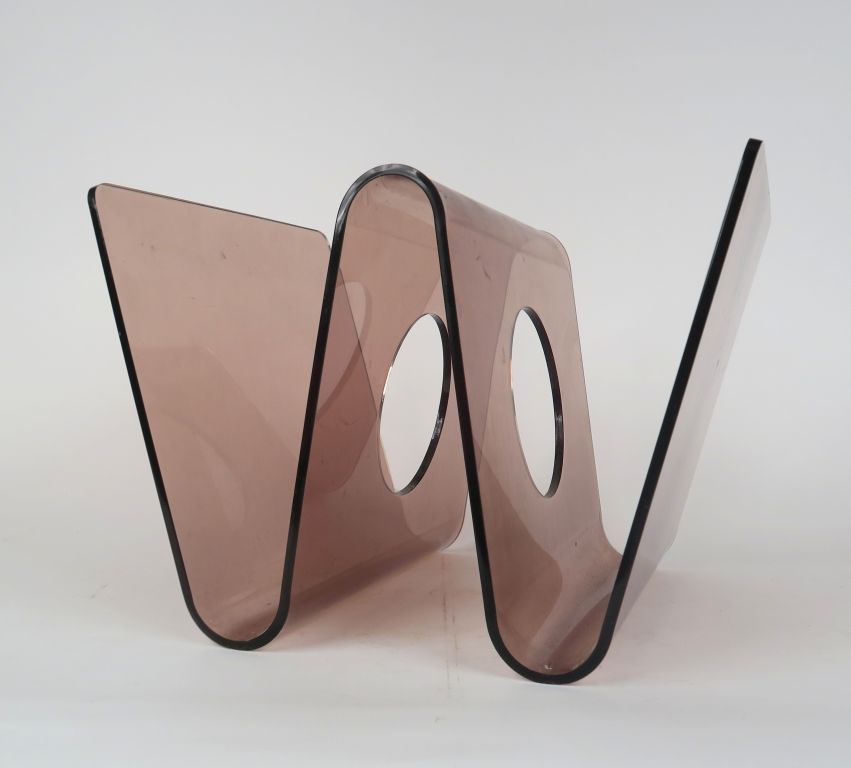 Porte revues en plexi glass fumé. Dim. 28 x 38 x 32 cm
