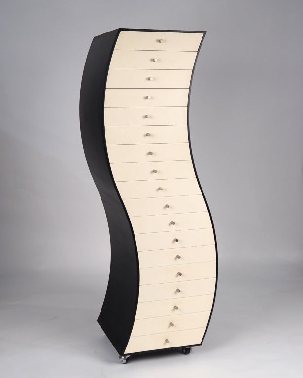 Shiro KURAMATA pour CAPPELLINI. Meuble "PC/3 - Side 1" blanc et noir. Avec son certificat d'authenticité en date du 25.02.1992. Dim. 172 x 45 x 50 cm. (micro choc)