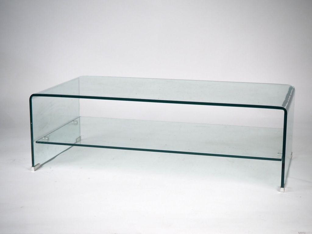 Table basse années 70 en verre trempé, à deux plateaux. Dim. 35 x 110 x 55 cm
