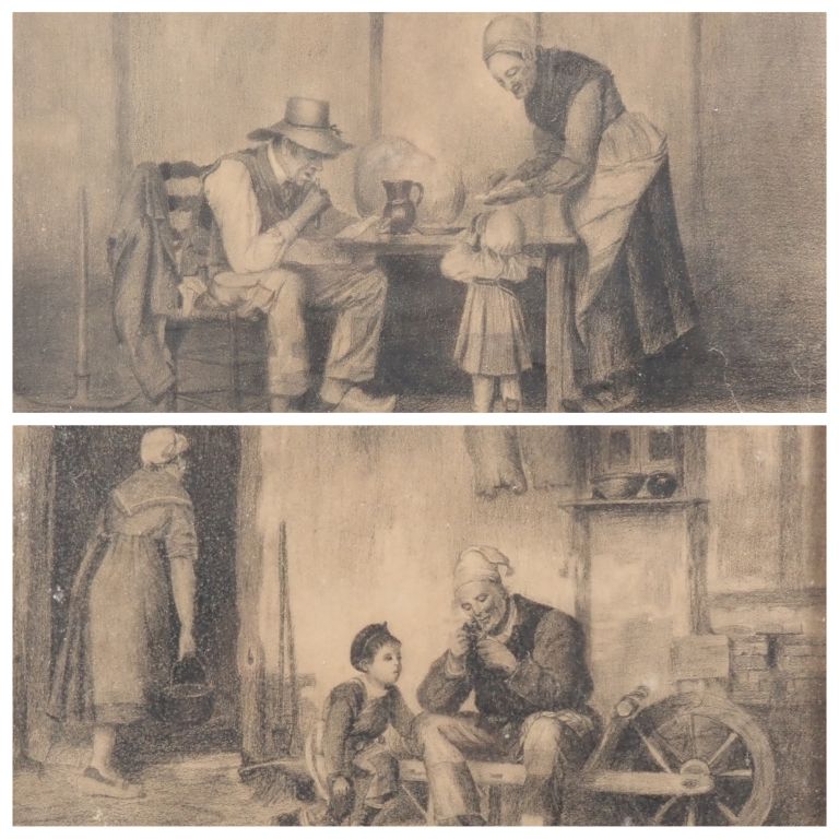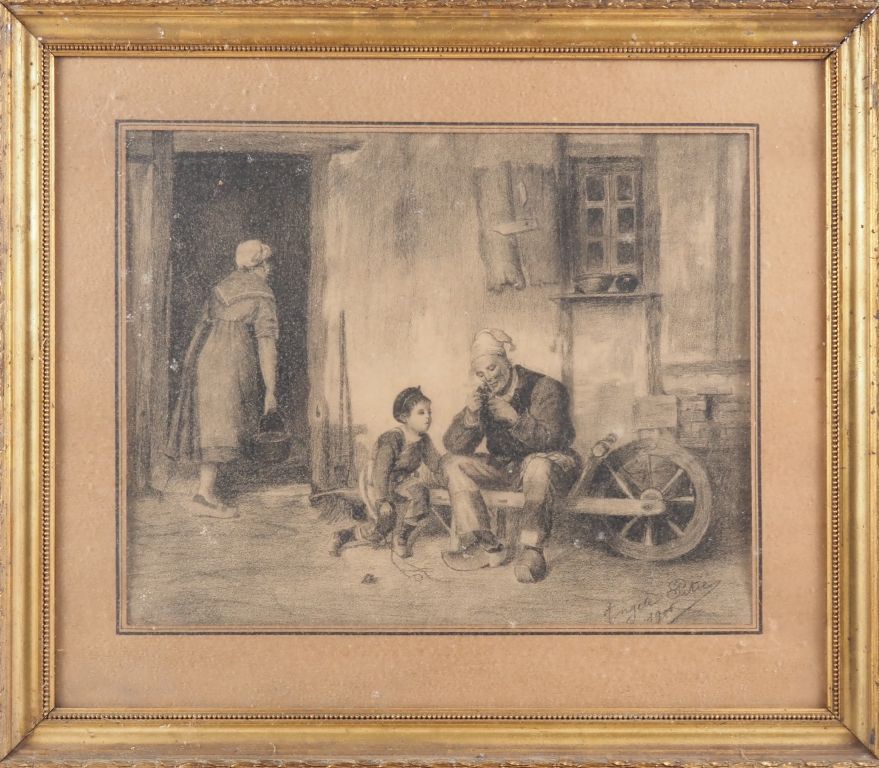 Angèle PITIE. "paysans et leurs enfants" Paire de dessins au crayon, signés en bas à droite et datés 1900 Dim. À vue : 32 x 40,5 cm