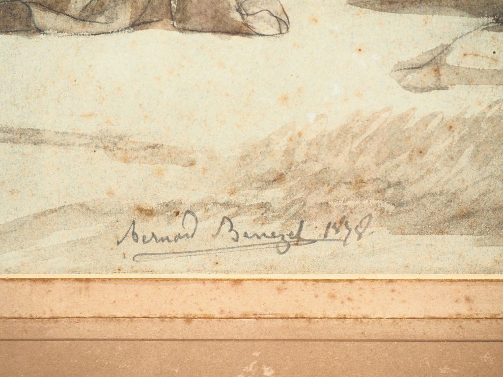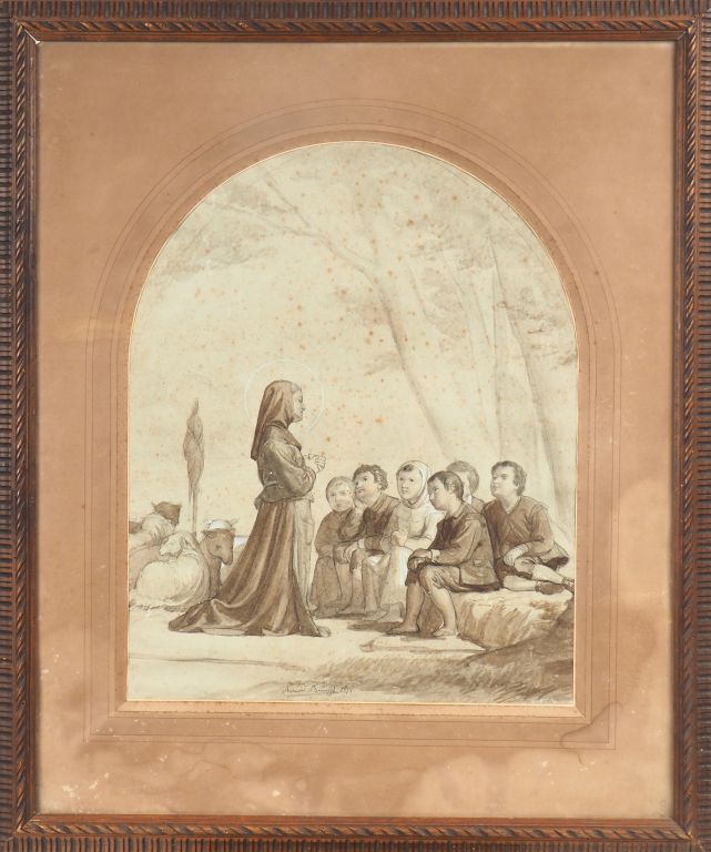 Bernard BENEZET. "Ste Germaine". Dessin préparatoire pour les fresques de la chapelle Sainte Germaine de la Cathédrale Saint Etienne à Toulouse. Dessin rehaussé signé et daté en bas 1878. Dim. à vue : 54,5 x 43,5 cm.