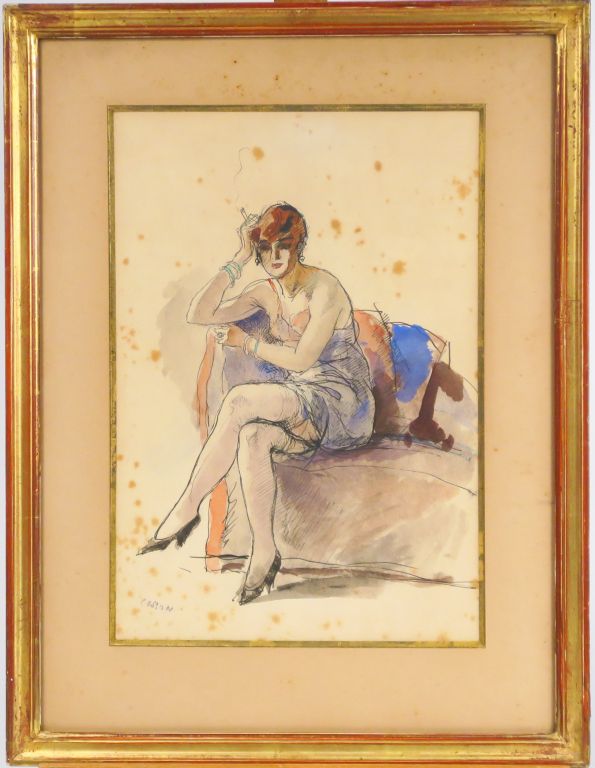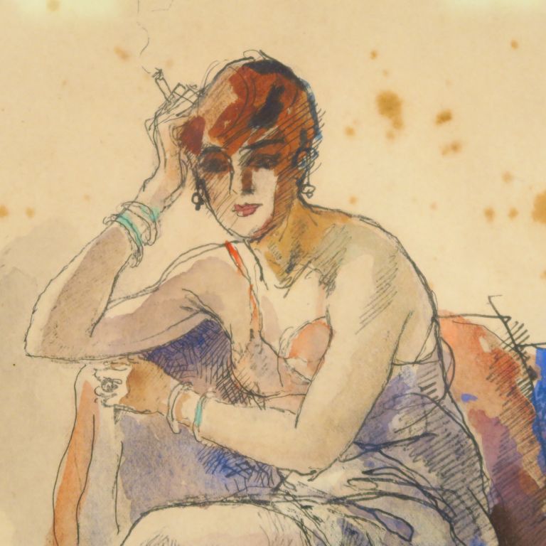 Lot de COSSON. "Jeune femme fumant". Aquarelle, signée en bas à gauche. Dim. au prix de 80 à 120 € en vente aux enchères par l'hôtel des ventes Primardeco